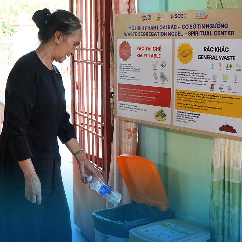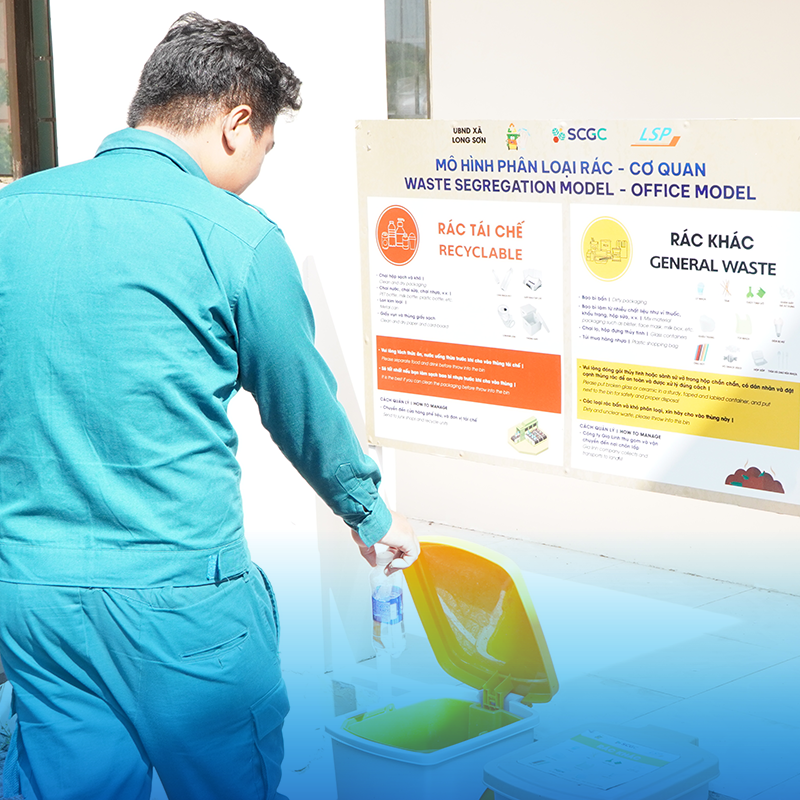 The project The Rac Khong Thai Waste Rescue Mission project first started in Feb 2019, SCG Chemicals (SCGC) and LSP joined the Public-Private Collaboration or PPC with MONRE, Dow Vietnam, and Unilever Vietnam to drive a circular economy for plastics waste management in Vietnam. Under PPC, SCGC and LSP committed to creating waste segregation at source models for schools and residential in Long Son commune.